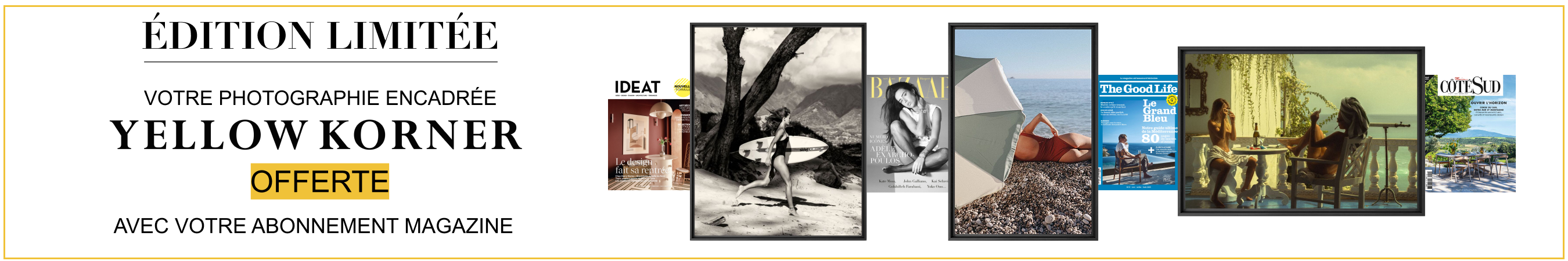 L'art s'invite chez vous : Abonnez-vous à Harper's Bazaar France, Côté Maison, IDEAT ou The Good Life et recevez une photographie encadrée YellowKorner OFFERTE (valeur 39€).